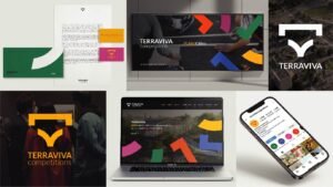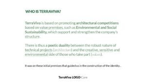 Redesign da identidade visual da startup ecológica de arquitetura TerraViva, desenvolvido em parceria com a Universidade de Aveiro em uma competição acadêmica internacional, onde o projeto foi finalista.